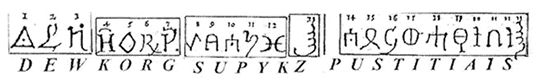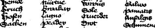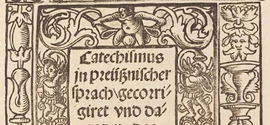 ![]() Im Gebiet Ostpreußens wurde vor Ankunft deutscher Siedler Preußisch (Prūsiskan) gesprochen. Zur besseren Abgrenzung zum späteren preußischen Staat und den neupreußischen deutschen Dialekten, spricht man daher von Altpreußisch (Waraprūsiskan). Das Altpreußische gehörte zu den baltischen Sprachen, wie die heute noch existierenden Sprachen Lettisch oder Litauisch, wobei die lettische Sprache dem Altpreußischen am nächsten kommt. Altpreußisch war in den Gebieten des späteren West- und Ostpreußens verbreitet, teils über diese Gebiete hinaus (in südlicher und östlicher Richtung). Die damaligen Sprachgrenzen lassen sich dabei nicht mehr genau verifizieren, da es so gut wie keine überlieferten Aufzeichnungen gibt. Altpreußisch gilt heute als ausgestorbene Sprache. ![]() So soll die preußische Runenschrift, nach dem Mönch und Historiographen Simon Grunau, ausgesehen haben. (3) Im Altpreußischen finden wir Lehnwörter aus weiteren baltischen und slawischen Sprachen zudem viele aus germanischen Sprachen. Die späteren Lehnwörter wurden zur Zeit des Deutschordensstaates übernommen, frühere sicherlich zur Zeit der Gotensiedlung an der unteren Weichselmündung. Die Goten lebten etwa um die Zeit Christi Geburt im Bereich der unteren Weichsel, ihr Siedlungsgebiet erstreckte sich bis hinein nach Masuren, wie gotisch-preußische Gräberfelder belegen. Mit dem Fortzug der Goten ans Schwarze Meer zwischen 150-200 n. Chr. verschwand die gotische Sprache in der Region und die Altpreußen übernahmen (erneut) die gotischen Siedlungsplätze. Bis zur Ankunft der Ritter des deutschen Ordens am Anfang des 13. Jahrhunderts, gibt es kaum Informationen über Geschehnisse im Preußenland. Die Ordensritter gründeten nach ihren Eroberungen Siedlungen und Städte nach deutschem Recht und holten neue Siedler, meist aus dem deutschsprachigen Raum ins Land. In den vom Deutschen Orden gegründeten Städten, wurde daher meist von Anfang an Deutsch gesprochen. So gewann das Deutsche, nicht nur durch die fortwährende Zuwanderung, immer mehr an Bedeutung, einfach schon aufgrund der Tatsache dass es eine verschriftete Sprache war. Die Verwaltung, die Gerichtsbarkeit in den Städten sprach und schrieb deutsch, das Altpreußische wurde somit immer mehr zu einer Art ländlichen Bauernsprache zurückgedrängt. Das älteste niedergeschriebene Preußisch findet sich im sogenannten Baseler Epigramm aus dem Jahre 1369. Dort heißt es: "Kayle, rekyse. Thoneaw labonache thewelyse. Eg koyte poyte nykoyte penega doyte." Auf deutsch: "Zum Wohl, Herr. Du bist kein gutes Onkelchen. Wenn du trinken willst, aber willst du kein Geld ausgeben." ![]() Ausschnitt aus dem Elbinger Vokabular (2) Es liegen nur wenige Verschriftungen des Altpreußischen vor. Die älteste, und nach überwiegender Forschermeinung auch die unverfälschteste, stellt das sog. Elbinger Vokabular dar, welches Anfangs des 15. Jahrhunderts veröffentlicht wurde. Zur Zeit der Reformation, wurden auch einzelne religiöse Texte wie der Luther-Katechismus ins Altpreußische übersetzt. Doch auch dies hielt das Aussterben der altpreußischen Sprache nicht mehr auf. ![]() Luthers Katechismus in "preusznischer Sprach gecorrigiret", gedruckt in Königsberg (2) Letzte Reste der Sprache hielten sich in im Samland und in Natangen bis ins 16. und 17. Jahrhundert, wie aus den Vorworten des ins Preußische übersetzten Katechismus Luthers hervorgeht. Natangen wird hier als "recht preuszischen Ort" bezeichnet, woraus sich vermuten lässt, daß die preußische Sprache hier noch relevant war. Auch die Sudauer sind noch erwähnt. Leider wird dabei nicht deutlich, ob es sich hier um die im 13. Jahrhundert getauften Sudauergruppen handelte, denen als christliche Neubürger die Ansiedlung im Samland ermöglicht wurde (Anm.: das eigentliche Sudauen war zu dieser Zeit noch nicht christianisiert), oder um die ursprüngliche Region Sudauen (um Goldap, Lyck und Suwalken). Aus den nachfolgenden Jahrhunderten gibt es keine gesicherten Informationen, ob noch irgendwo im nennenswertem Umfang Preußisch gesprochen wurde. Die deutsche Sprache wurde, neben ihrer Funktion als Verwaltungssprache, in den meisten Landesteilen auch zur überwiegenden Umgangssprache und bildete dabei selbst neue Dialektformen aus. In diesen, mittlerweile leider auch ausgestorbenen preußisch-deutschen Dialekten, fanden sich durchaus noch Reste der altpreußischen Sprache. Wie z.B. die in Ostpreußen übliche Bezeichnug für ein junges Mädchen als Marjellchen oder Kaddig für Wacholder. Mit der Vertreibung aus Ostpreußen starben nach 1945 auch die Dialekte dieser Region aus. Heute gibt es in Versuche, u.a. von heidnischen oder historisch und kulturell interessierten Gruppen, die altpreußische Sprache wiederzubeleben. ![]() Bildnachweise: (2) unbekannter Autor (Lizenz: gemeinfrei) (3) Simon Grunau (Lizenz: gemeinfrei) |